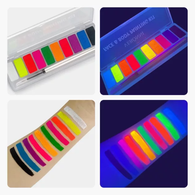 Briljante Gloed - Kijk hoe gezichten en handen oplichten onder UV-licht. Elke streek zorgt voor indrukwekkende neonhelderheid bij elk feestje.