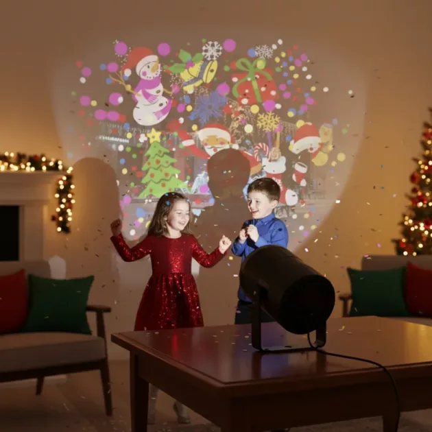 Superleuk voor familietijd na het eten! We komen samen en kijken naar de schattige kerstpatronen die overal dansen. Maakt ons huis gezellig.