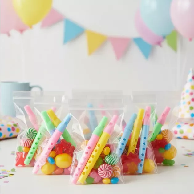 Geef elk feest een levendige boost met deze kleurrijke instrumenten. Kinderen zullen het geweldig vinden om samen muziek te maken en genieten van eindeloos plezier. Elk lichtgewicht speeltje brengt opwinding en gelach op elk feest. Ouders zullen genieten van de blije gezichten en vrolijke deuntjes.