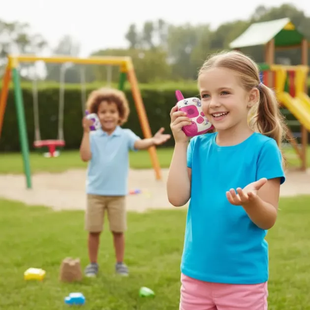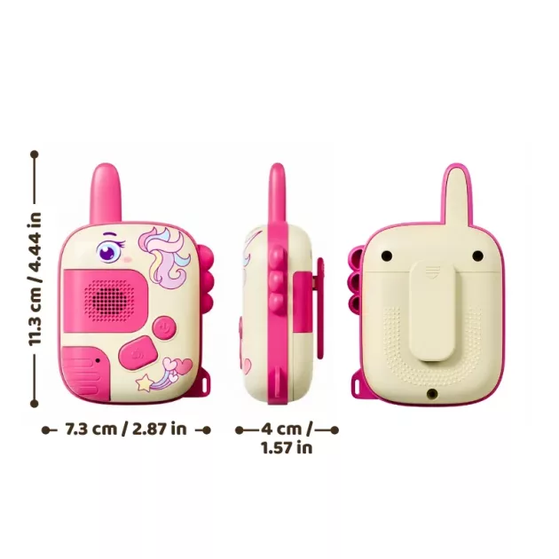 Geef gemoedsrust terwijl je kind ontdekt en speelt. Deze kleurrijke walkietalkie laat kinderen overal veilig en direct communiceren. Ouders kunnen ontspannen, wetende dat hun geliefden altijd maar één oproep verwijderd zijn. Zie de glimlachen verschijnen terwijl ze nieuwe avonturen binnen of buiten ontdekken.