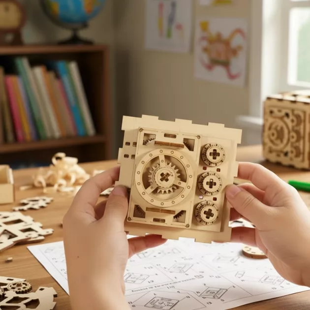Mijn zus en ik hebben samen de houten kluis gebouwd. De instructies waren duidelijk, en we hadden geen hulp van volwassenen nodig. Nu gebruik ik hem voor mijn sieraden!