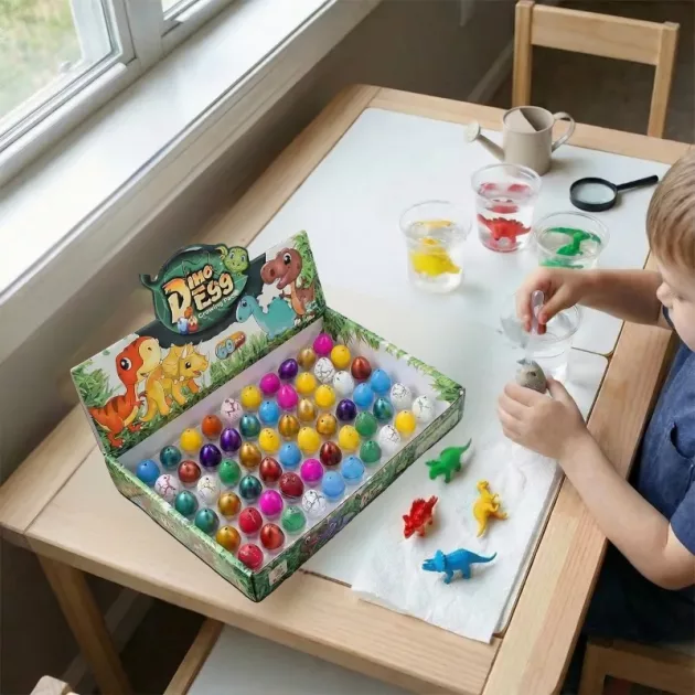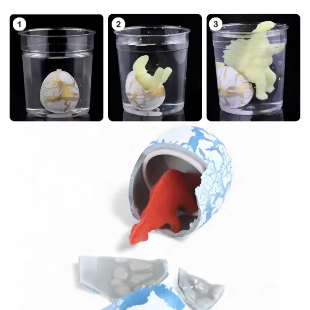 Deze eieren zijn geweldig! Water toegevoegd en kleine dino’s zien tevoorschijn komen. Mijn vrienden en ik wisselden om de beurt de schalen te kiezen, elke keer lachen.