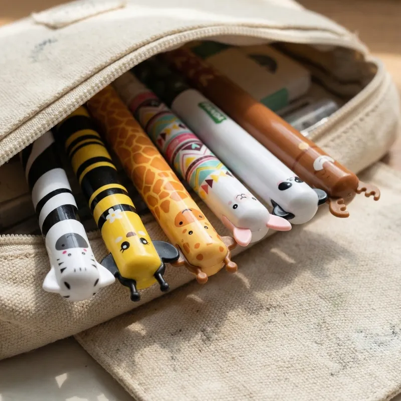 Mijn huiswerk voor wiskunde ziet er nu geweldig uit omdat ik kleine foutjes meteen kan uitgummen. Gewone pennen zijn vaak slordig, maar deze dierenpennen houden mijn werk netjes.