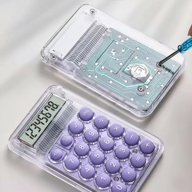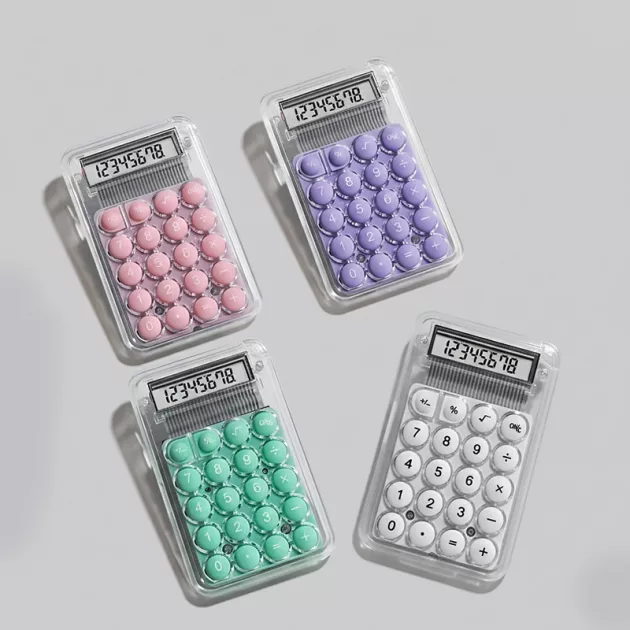 Deze vrolijke rekenmachine maakt huiswerk veel leuker. Geen saaie wiskunde meer, en de felle kleuren maken mijn bureau supermooi.