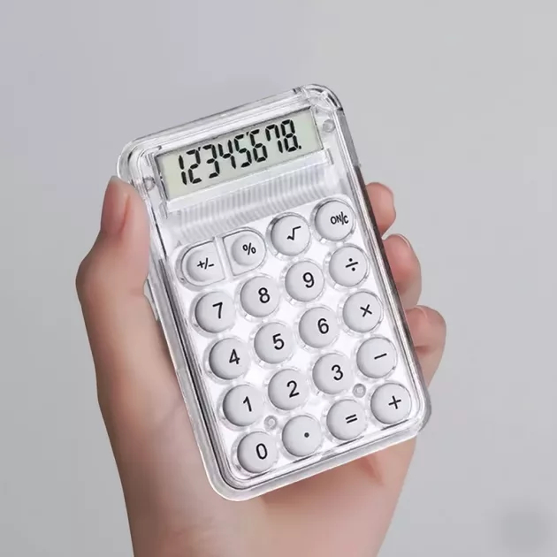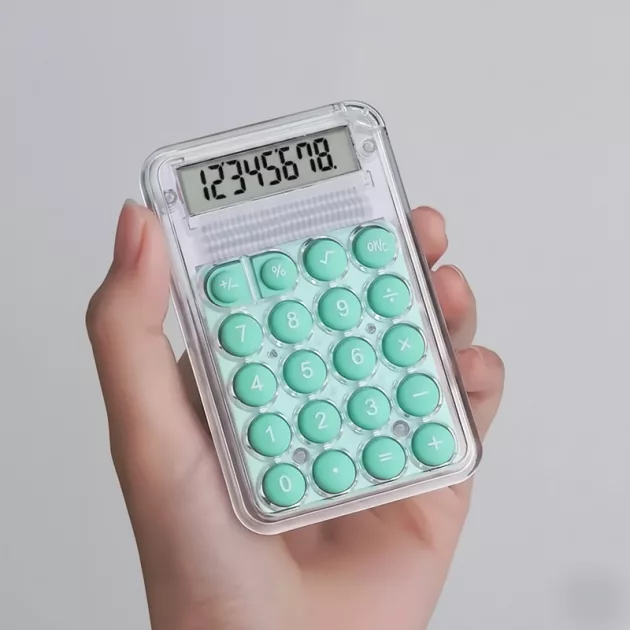 Deze kleine rekenmachine is echt een gamechanger! Ik druk nooit op de verkeerde knop en hij past perfect in mijn zak.
