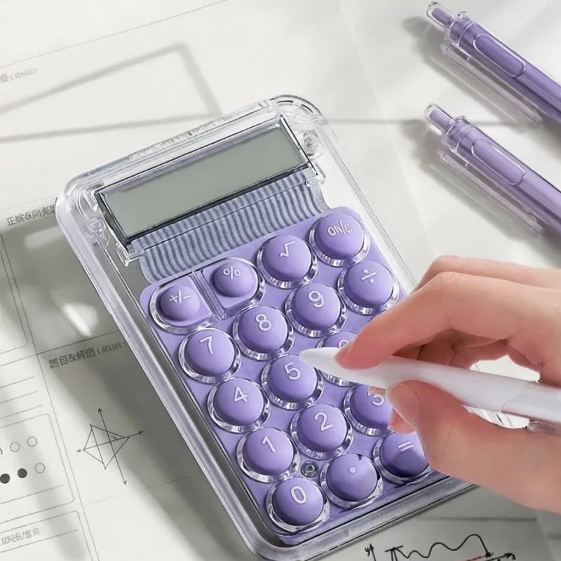 Deze vrolijke rekenmachine maakt huiswerk veel leuker. Geen saaie wiskunde meer, en de felle kleuren maken mijn bureau supermooi.