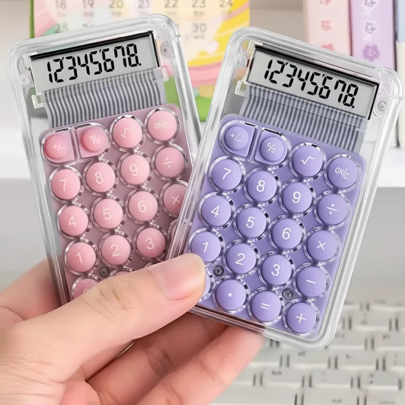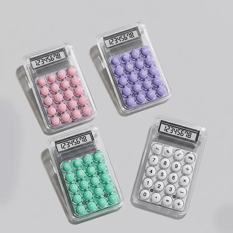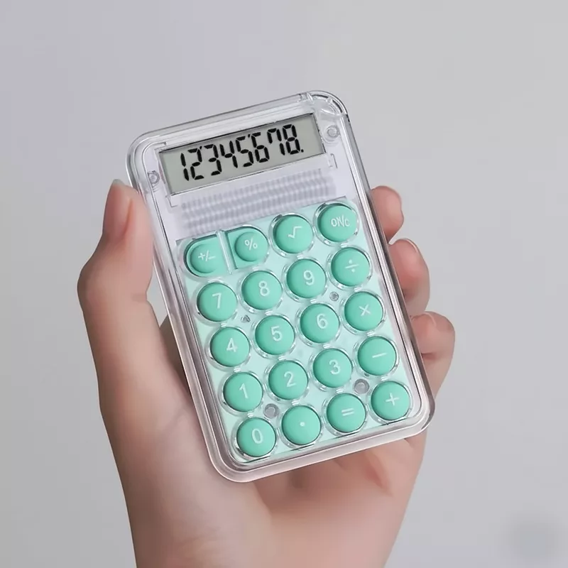 Deze kleine rekenmachine is echt een gamechanger! Ik druk nooit op de verkeerde knop en hij past perfect in mijn zak.