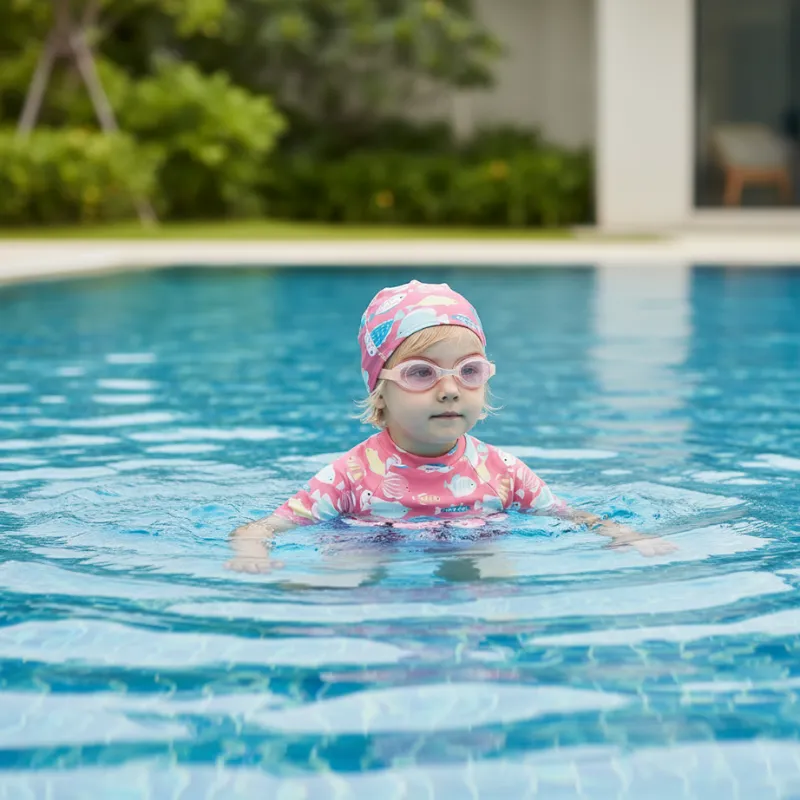 Deze zwemoutfit veranderde onze tijd in het zwembad in de achtertuin van constante zorgen in ontspannen plezier. De drijfpanelen ondersteunen zacht trappen terwijl ik vlakbij met familie praat.