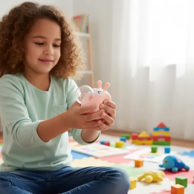 Het popperdier laat me beter voelen als ik verdrietig ben. De kleuren zijn zo fel, en ik speel er graag mee na mijn huiswerk.