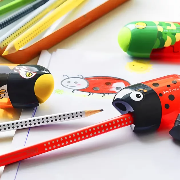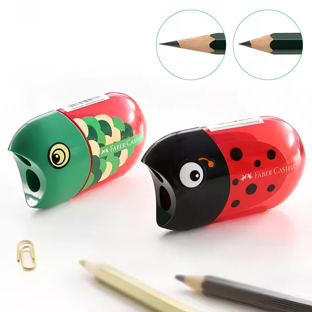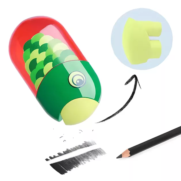 Vrolijke ontwerpen stimuleren creativiteit aan elk bureau of tafel. Geen rommel blijft achter dankzij het slimme bakje voor slijpsel. Elke keer weer betrouwbare resultaten, zodat potloden altijd klaar zijn om te leren.