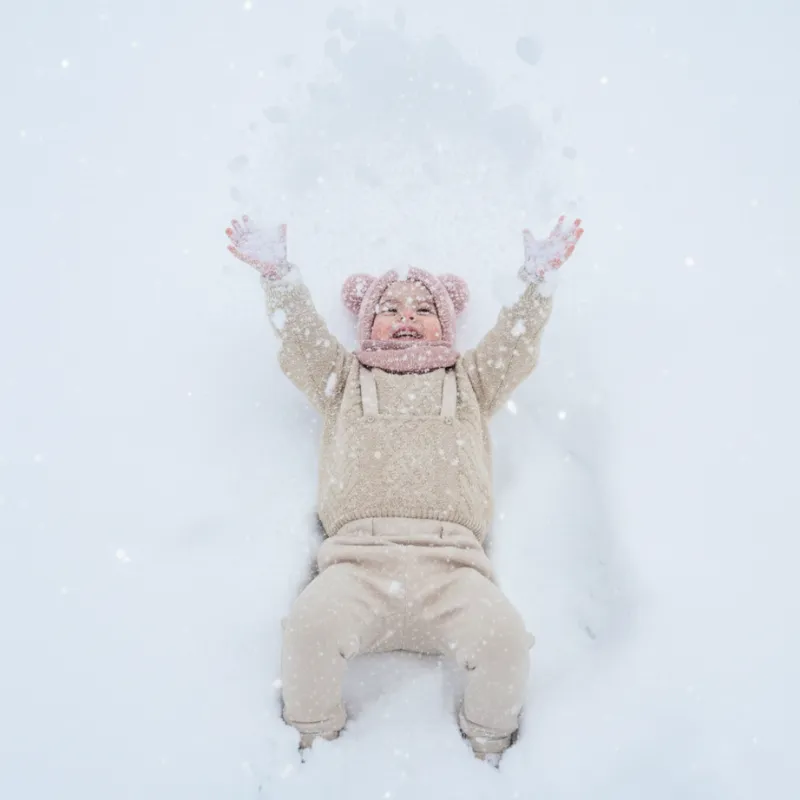 Geen rode wangen meer na het buiten spelen. Mijn nichtje blijft warm en ziet er schattig uit met die pluizige pompons die rondspringen.