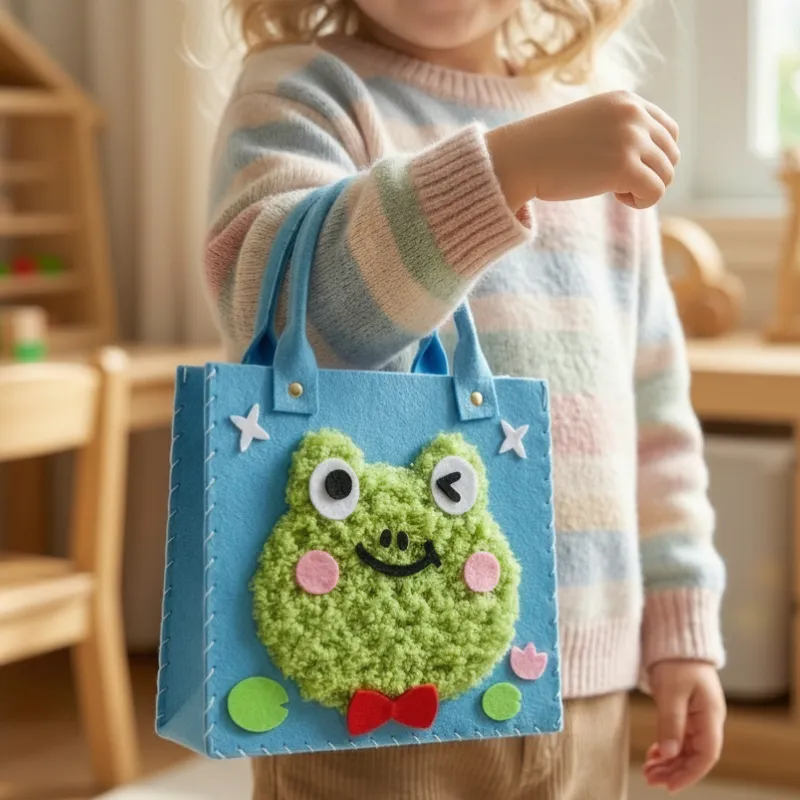 Mijn zoon is helemaal gek op zijn zelfgemaakte tasje! De vilten stukjes zijn zacht en makkelijk om mee te werken. Het heeft echt zijn zelfvertrouwen vergroot om het zelf af te maken en te gebruiken.