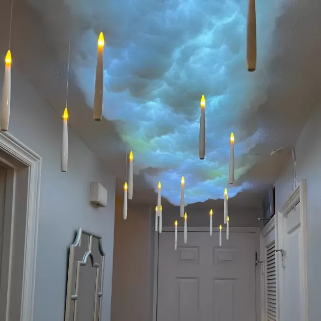 We hebben deze zwevende kaarsen opgehangen voor een logeerpartijtje, en al mijn vrienden willen ze nu ook. Het toverstokje is super leuk.
