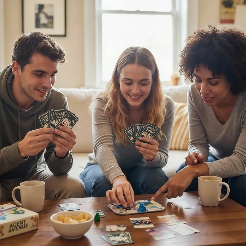 We zijn het eindelijk eens over wat we na het eten spelen! Agent Avenue houdt ons aan de praat en nadenkend – zelfs onze stille oom doet mee.
