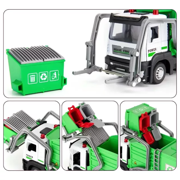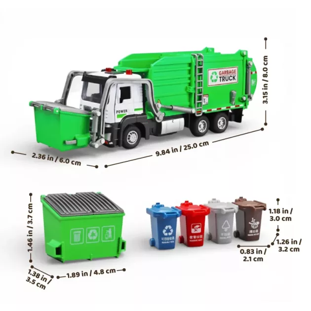 Mijn zoon vindt het geweldig om de vuilniswagen door het huis te racen. De geluiden en knipperende lichten maken opruimtijd super leuk, en de bakken zijn zo cool.