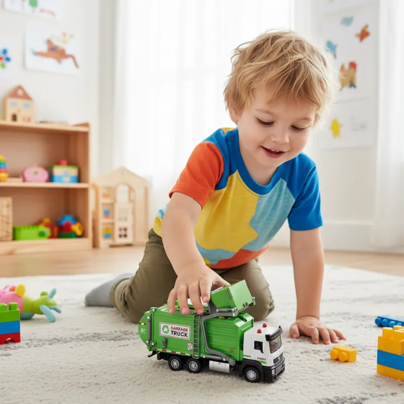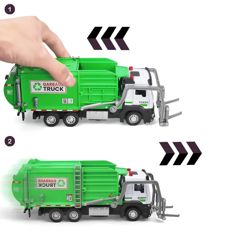 Mijn zoon vindt het geweldig om de vuilniswagen door het huis te racen. De geluiden en knipperende lichten maken opruimtijd super leuk, en de bakken zijn zo cool.