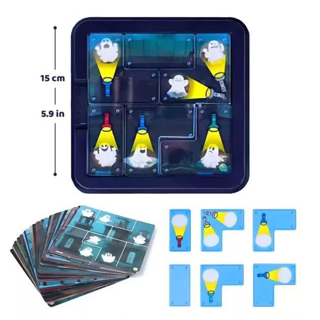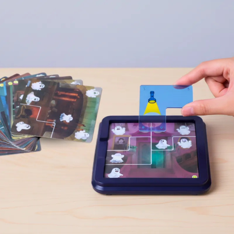 Ghost Game houdt ons bezig tijdens autoritten. De doos past perfect in de tas van mijn moeder en we vervelen ons nooit meer tijdens het wachten in restaurants.