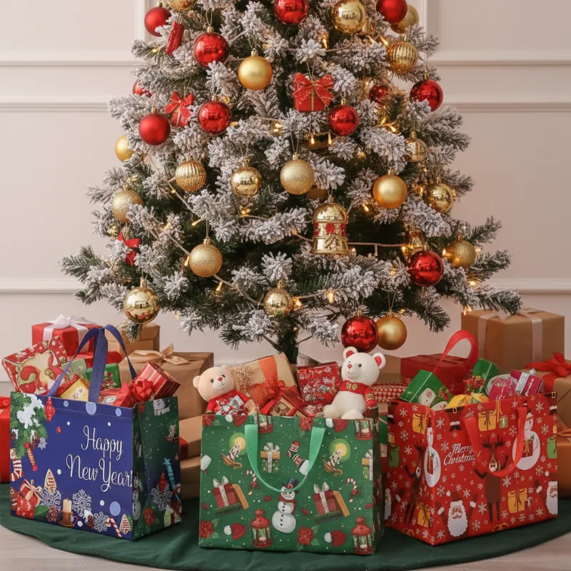 De feestelijke tas gebruikt voor al onze familiegiften dit jaar. De handvatten zijn echt comfortabel en het vrolijke ontwerp maakte iedereen zo blij op kerstochtend.