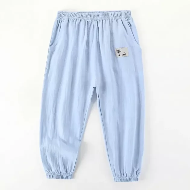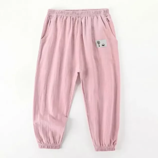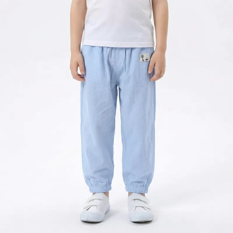 Lichtgewicht Brede Pijpen Casual Katoenen Zomerbroek met Elastische Boorden voor Kinderen