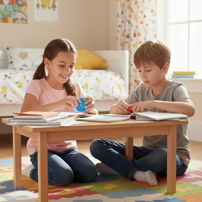 Draaien helpt mijn dochter zich te concentreren en ze friemelt minder aan tafel. Haar vermenigvuldigingsvaardigheden zijn snel verbeterd en ik ben blij met haar vooruitgang.