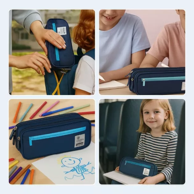 Hier vindt u altijd snel en eenvoudig pennen en potloden. Vier ruime vakken voorkomen rommel en helpen je kind zich snel voor te bereiden. Nooit meer zoeken naar ontbrekende spullen voor de lessen.