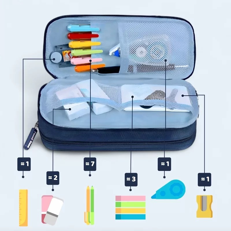 Elke ochtend makkelijk in te pakken. Elke pen, slijper en gum heeft een eigen plek, dus mijn tas inpakken is nooit meer een probleem.