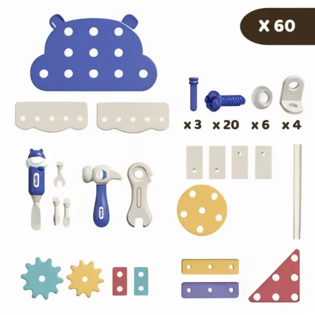 Zie de verbeelding tot leven komen terwijl jonge bouwers eindeloze mogelijkheden verkennen. Elk gereedschap stimuleert nieuwsgierigheid, coördinatie en vrolijke leermomenten. Opruimen wordt eenvoudig met een slimme doos die alles netjes houdt. Geef je kind elke dag een leuke manier om echte probleemoplossende vaardigheden te oefenen.