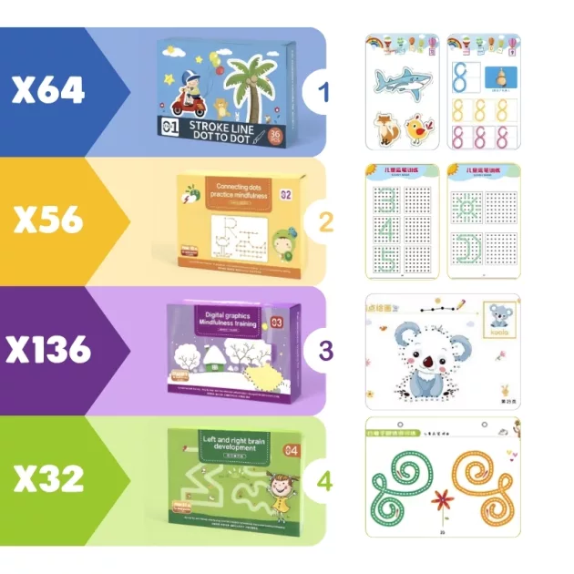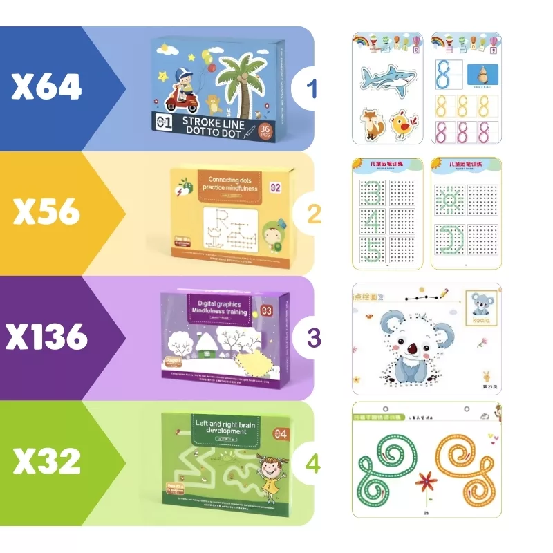 Met het Kidzly overtrekboek kunnen kinderen veel plezier beleven terwijl ze leren! Het introduceert je kind in het schrijven en verbetert de motorische vaardigheden die nodig zijn voor penbeheersing. Duurzaam en herbruikbaar, een kosteneffectieve investering in de groei van je kind.
