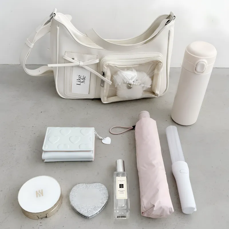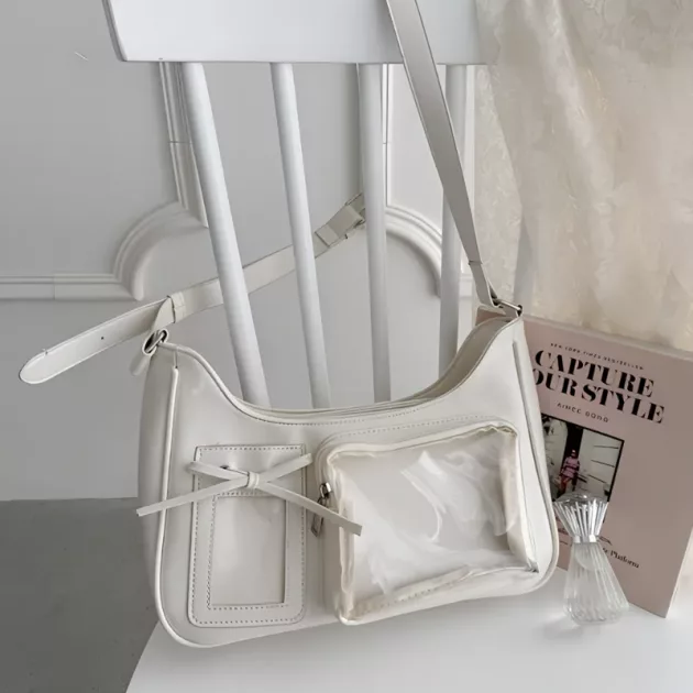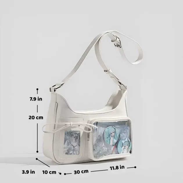 De band is comfortabel op mijn schouder. Ik vind het doorzichtige deel leuk omdat ik elke week iets anders kan laten zien, van ruilkaarten tot pins.