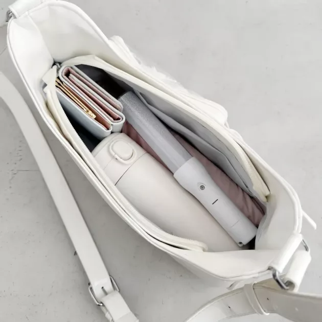 Het tasje is licht maar er past veel in! Ik stop mijn pen en lunchgeld erin en weet altijd waar ze zijn.