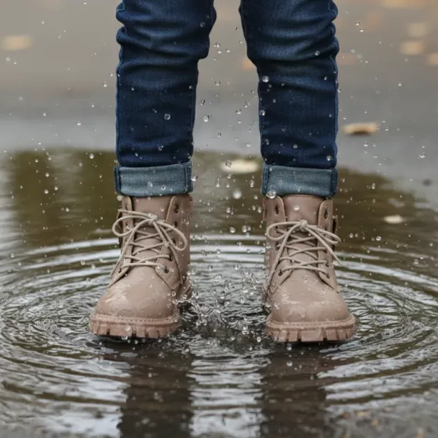 Waterdichte Bescherming - Plassen en regen komen nooit de laars in. De voeten van je kind blijven droog, waar ze ook heen gaan.