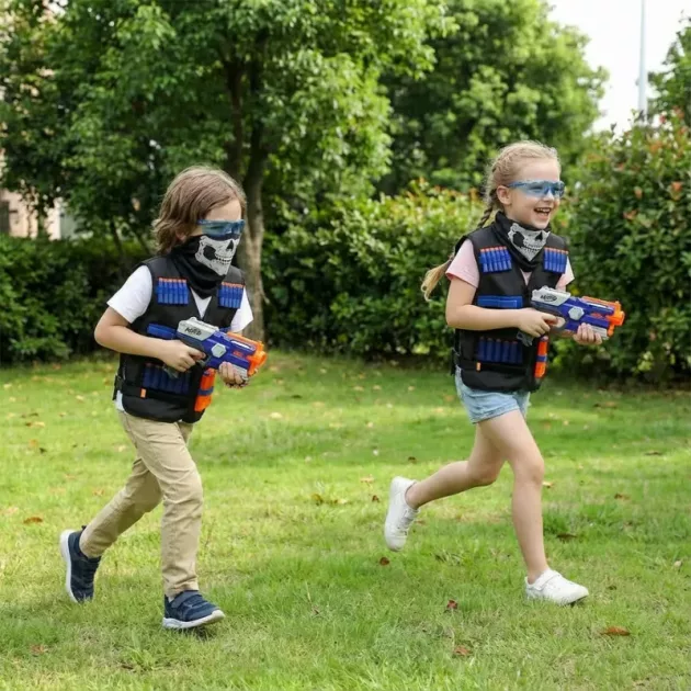 Volledige veiligheid - Beschermend masker en bril beschermen gezichten tegen rondvliegende pijltjes. Ouders kunnen gerust zijn dat ogen en huid buiten veilig blijven.