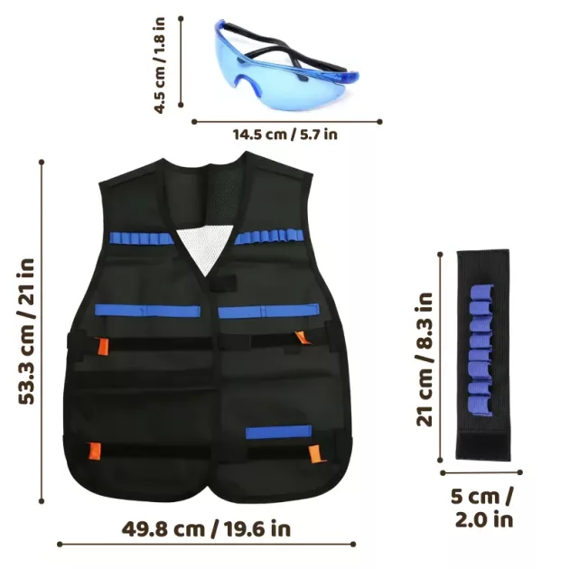 Mijn vrienden en ik gebruiken deze voor onze buitenspellen. Ik vind de zakken fijn voor snacks en water, en mijn moeder vindt het fijn dat mijn ogen beschermd zijn.