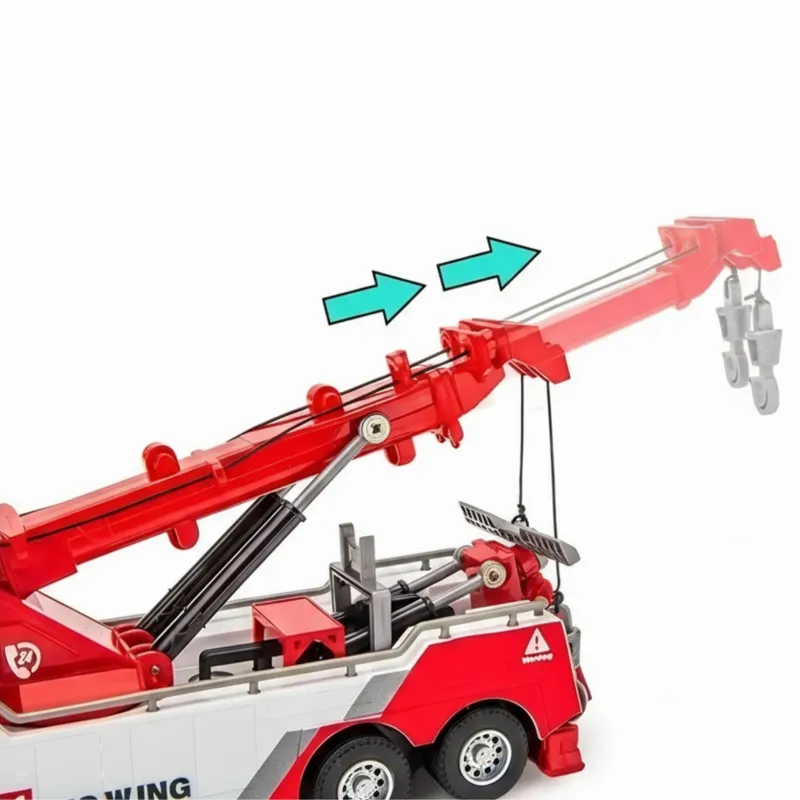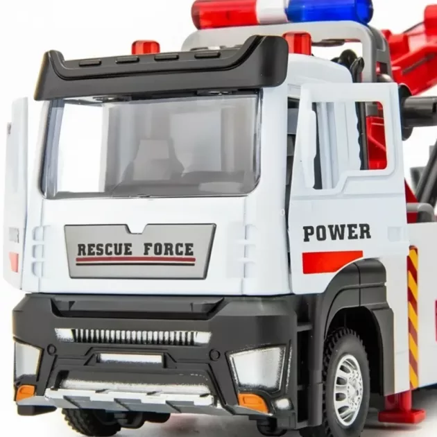 Mijn broer en ik vinden het geweldig om reddingsspelletjes te spelen met deze takelwagen, vooral met de coole haken en felle lichten. De deuren kunnen open en het is echt leuk om te gebruiken!