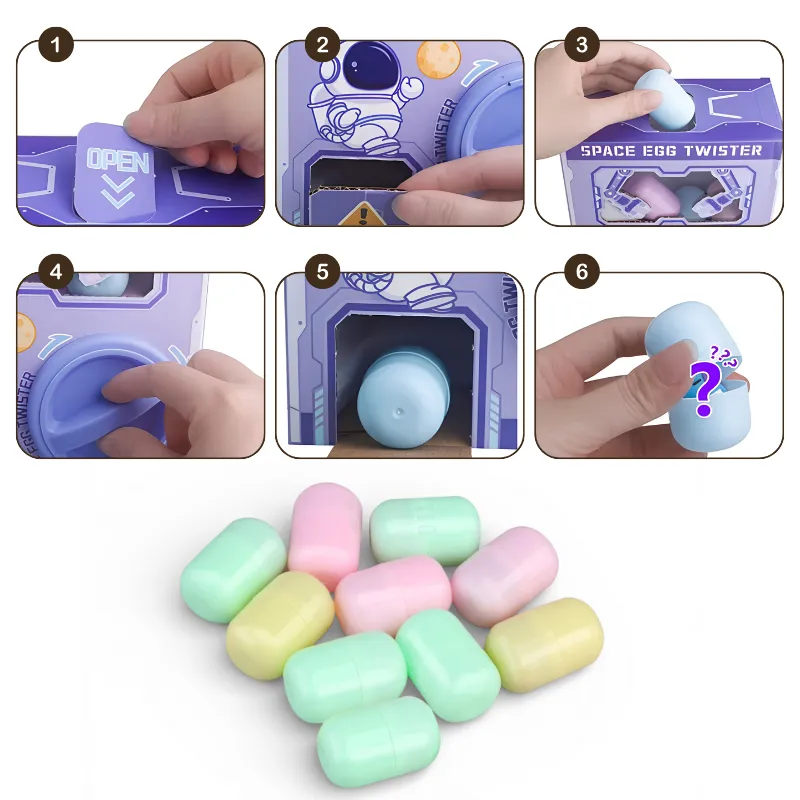 Breng plezier in huis met een boeiend dispenser spel voor kinderen. Elke draai onthult een unieke verrassing, prikkelt de verbeelding en fleurt de dag op. Lachende gezichten en verwondering groeien terwijl kinderen samen vrolijke verrassingen ontdekken. Creëer blijvende herinneringen en stimuleer creativiteit en vriendschap.