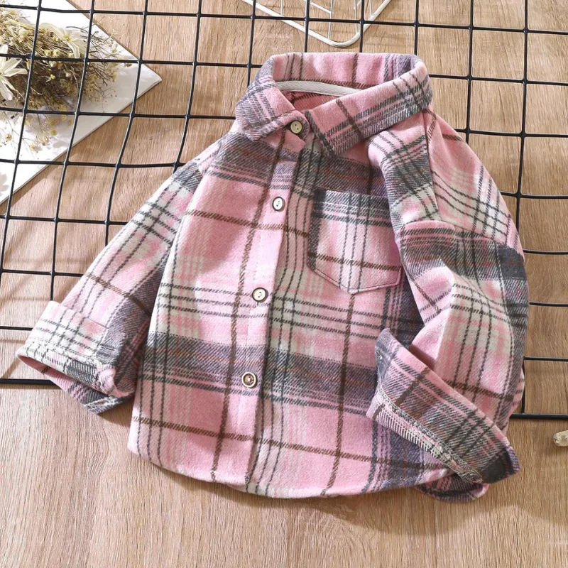 Warme Lange Mouwen Flanellen Ruitjesblouse voor Kinderen