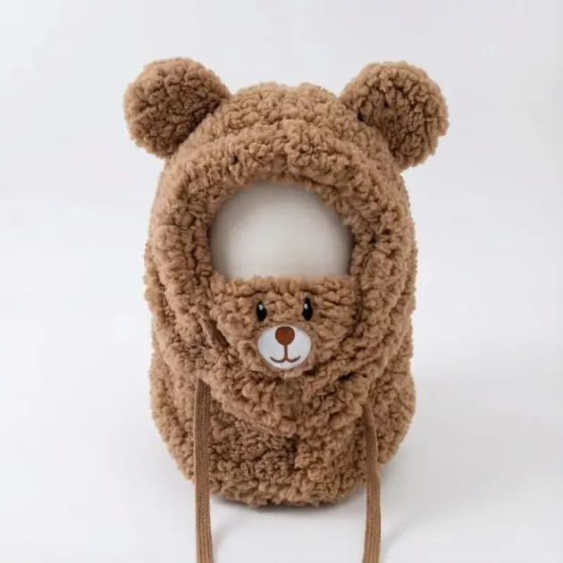 Winter Schattige Pluche Balaclava met Beeroortjes voor Kinderen