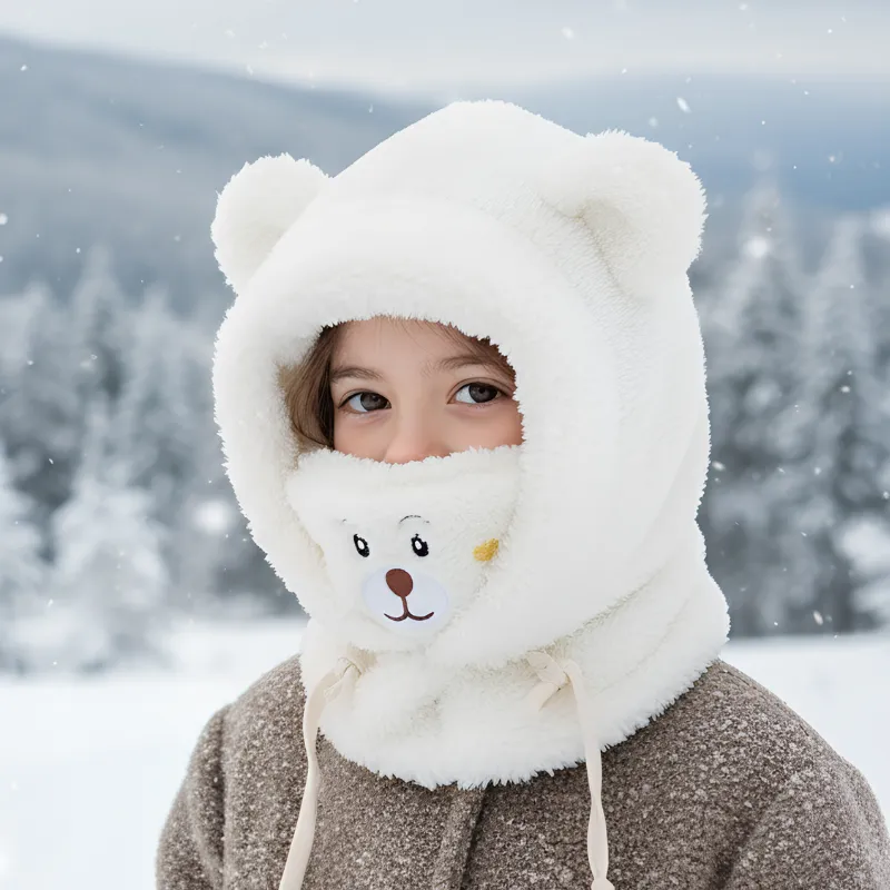Winter Schattige Pluche Balaclava met Beeroortjes voor Kinderen