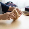Mijn broer heeft me geleerd hoe ik deze houten globe moet oplossen. Nu houden we wedstrijden om te zien wie het snelst is. Het is nooit saai!