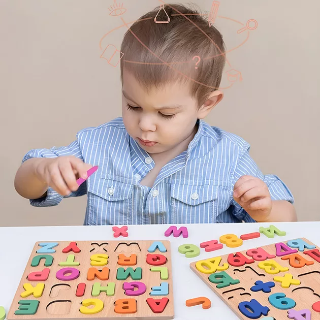 Houten Montessori Speelgoed Alfabet Bordpuzzel en Matchspel