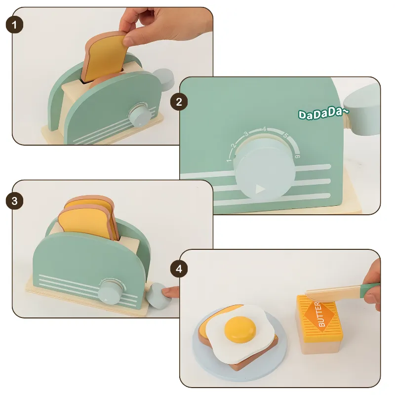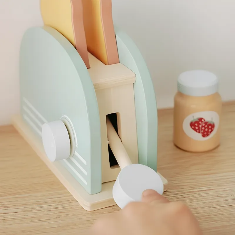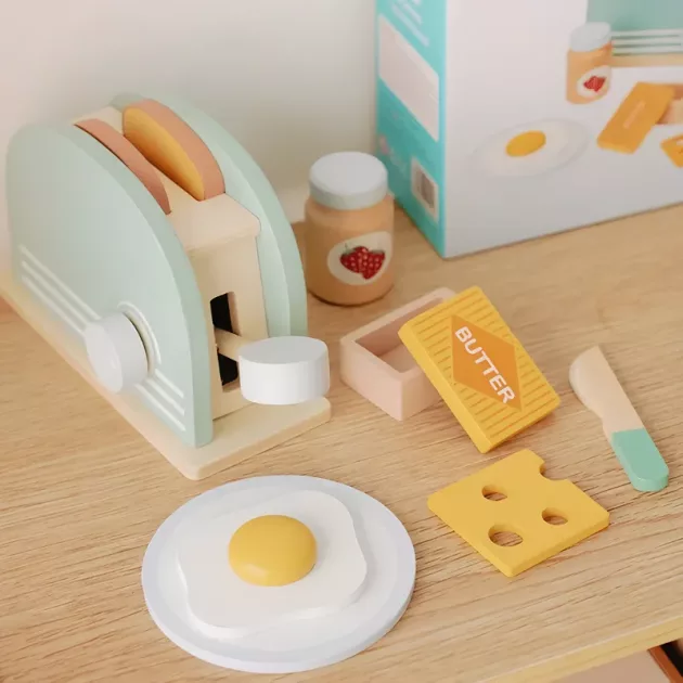 Wij houden van schermvrij speelgoed, en deze broodrooster is perfect. Mijn dochter nodigt haar vriendinnen uit voor ’toastfeestjes’ in de ochtend.